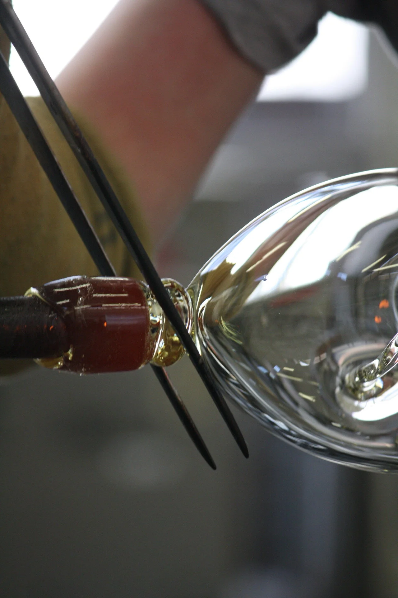 Murano is still known for world renowned glass production. It is also maintains a specialist craft industry for the production of some of the best glass blowing tools in the world. Bella uses hand tools made on Murano, especially tailored to fit her hand to help create the work.