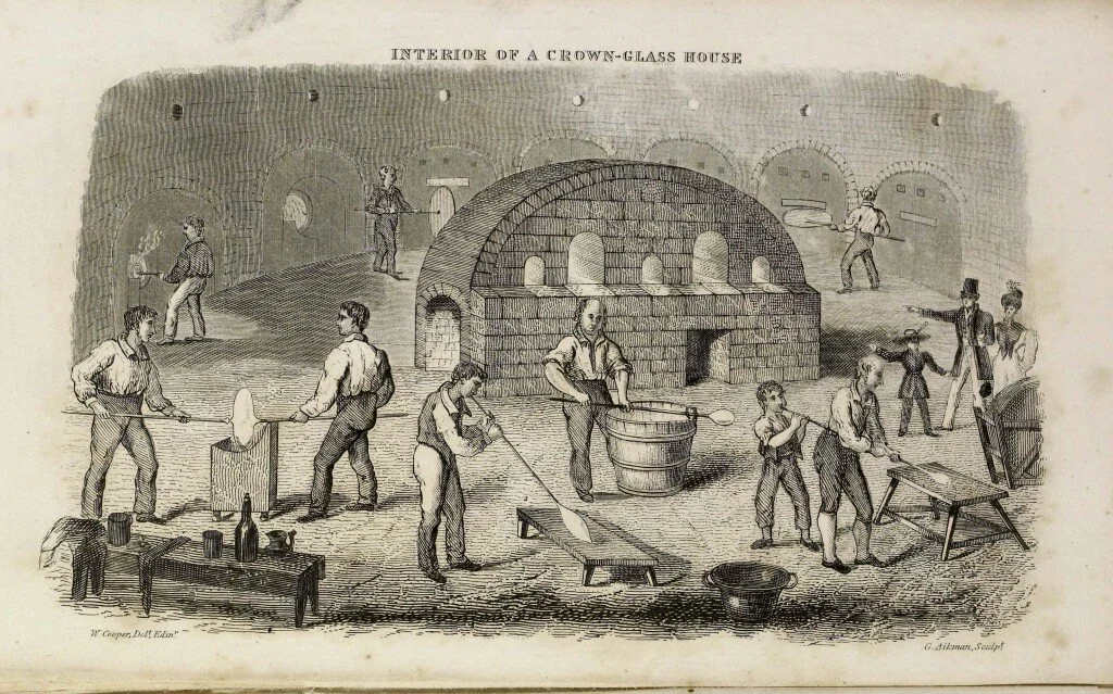 The industrial revolution of the 19th century brought further consistency and progression in glass output. Glass Factories produced great quantities of glass products and advancements in science developed new formulas of glass. Aspects of traditional artisan blown glass production also began to be replaced by machine or industrial process, for example in table glassware and drinking vessels.